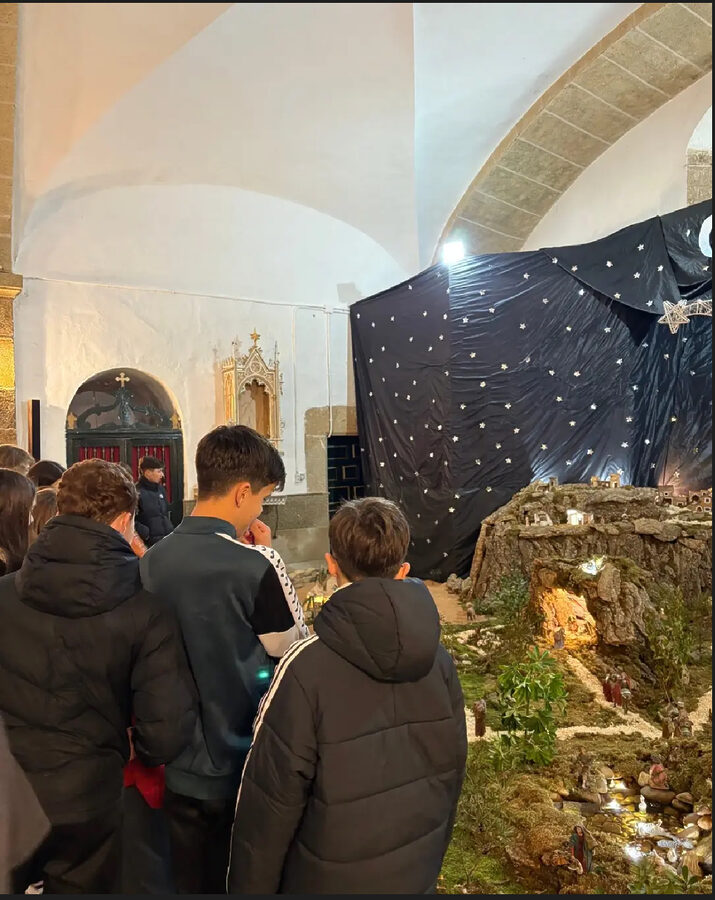 Nuestros alumnos de 1º de la ESO han disfrutado hoy de una salida muy especial organizada por el departamento de Religión Católica. Hemos visitado el impresionante Belén de la parroquia del pueblo, una auténtica obra de arte llena de detalles minuciosos.