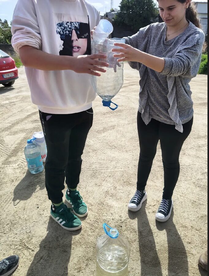 Posteriormente, el alumnado realizó una sencilla metodología científica para analizar muestras de aguas recogidas en San Vicente y Villar del Rey. Concretamente, las muestras fueron recogidas por las profesoras del departamento de ciencias naturales, Aroa y Nuria, en la fuente de la Vega del Madroñal y de los Caños de San Vicente de Alcántara, y en la depuradora de Villar del Rey.